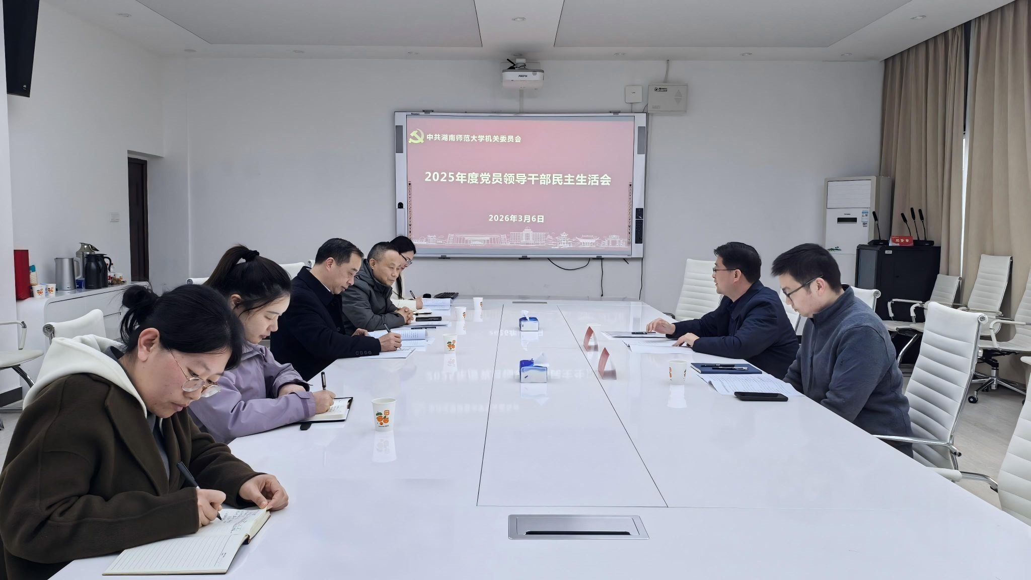 3月6日下午,机关党委在励德楼会议室召开2025年度党员领导干部民主生活会。学校2025年度二级党组织民主生活会第七督导组组长、发展规划与学科建设处处长孙岳兵到会指导。会议由机关党委副书记(主持日常工作)粟用湘主持。机关党委对开好这次民主生活会高度重视,会前研究制定工作方案,深入开展理论学习,广泛征求意见建议,坦诚开展谈心谈话,全面深入查摆问题,深刻剖析反面典型案例,认真撰写对照检查材料,为开好民主生活...