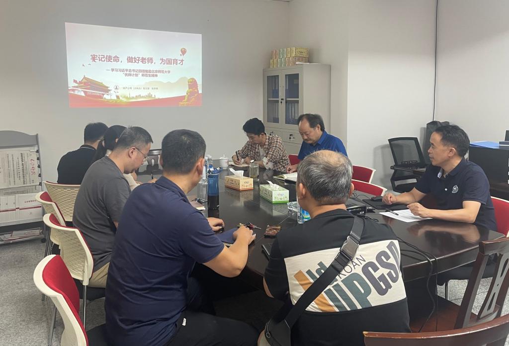 张荣钢带领支部党员深入学习了习近平总书记给北京师范大学“优师计划”师范生重要回信精神,强调作为教育系统的党员干部,要始终坚定理想信念,争做“四有”好老师。他讲述了黄大年、张桂梅、石兰松、钟扬、顾明远等榜样教师的先进事例,回望总结了中国这十年在教育领域取得的突出成就,生动阐述了习近平总书记的教育观。