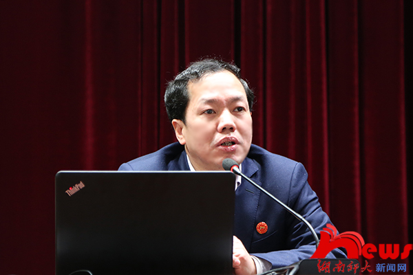 我校机关党委所属的职能部门管理干部、离退休党委在职人员、公共管理学院行政管理学系党支部成员等约300人聆听了宣讲。